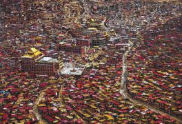 „Baranyai Levente több mint két évtizede festi elkötelezetten a Föld portréját. A mintegy százhatvan darab festményéből összeálló kivételes festészeti életműve egy sajátos, a művész által kifejlesztett archeológián alapul. Olyan tereket, tájakat, létesítményeket láthatunk vásznain, amelyek lentről, azaz a földi felszínről nem érzékelhetők, vagy a jelenben már nem láthatók, mert rég elpusztultak már, vagy soha nem is léteztek, vagy lerombolásuk előtti utolsó pillanatban vagyunk. Baranyai archeológiai kutatóárka úgy „utaztatja” nézőit, hogy a teret és az időt, az ismertet és a kikövetkeztethetőt túrja fel festőkésével. Baranyai expedíciója azonban legalább annyira tényszerű és kritikai, mint minden más régészeti kaland. A feltárt múltbeli alakzatok által mozgásba hozza a meglévő emberi tudást, az azt kipótló képzelőerőt és a következtetésekből levonható jövő iránti felelősséget.