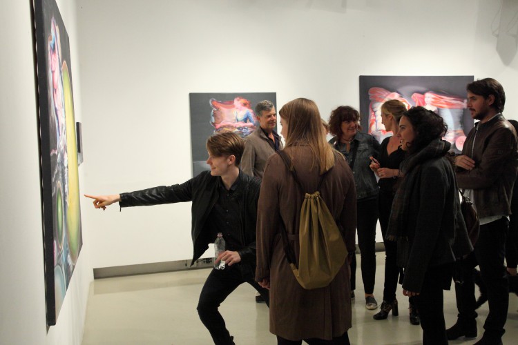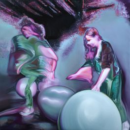 Vagyis mi az, ami a tudományosan megfogható és igazolható, és honnan kezdődik, ami már csak a művészet nyelvén leírható. Ennek a határterületein érzi magát leginkább otthon Csurka Eszter. A festményeken megjelenő testek dinamikája, az oldás és kötés és a színek konzekvens használata jellemzi talán leginkább a most kiállításra kerülő, legfrissebb képeit.