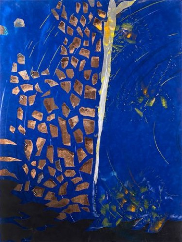 Megint máskor bársonyos felületekre fest, kihasználva ennek az anyagnak a különleges fényelnyelő és -visszaverő hatását. Így azon a festményén is, melyen haldokló apjától búcsúzik: a képen egy vörösen izzó lábnyom látható alulnézetből.