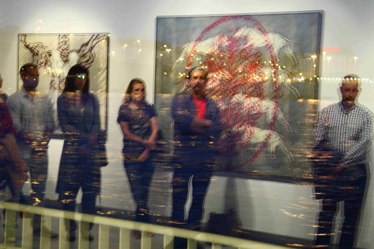 Mindezt persze nem csak az a néző kérdezi, aki egy kicsit el van már szokva a reprezentatív méretű, ikonszerű igényekkel fellépő, klasszikus technikákkal operáló, előtér-háttér-figura-kolorit viszonylatokban kommunikáló, mágikus realista festményektől, tehát aki a kortárs képzőművészet kapcsán nem mondjuk Peter Doigra gondol első lendületében (ami persze könnyen lehet, hogy fatális hiba), szóval ezeket a nagyon nyers, nesze-a-pofádba kérdéseket nem csak a megrökönyödött néző fogalmazza meg, hanem ezek a kérdések készen várják e festmények terében, épp úgy, mint rács mögött a párducok, mint falusi cirkuszban a rémisztő bohócok, és mint a közúti ellenőrök az út végén a kanyarban, vagy mint az asszonykórus a cirkusszal átellenes községháza előtt.