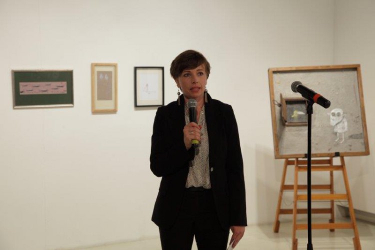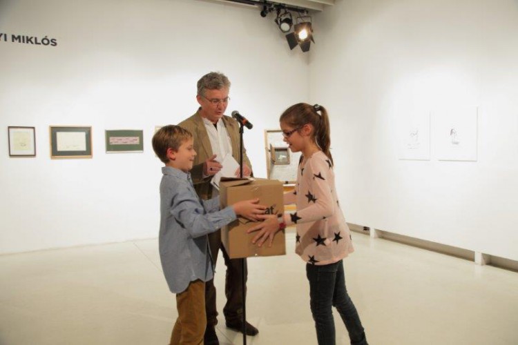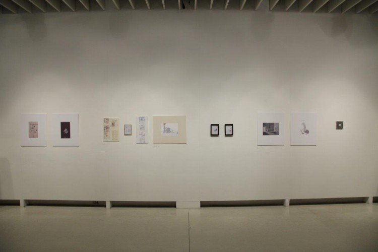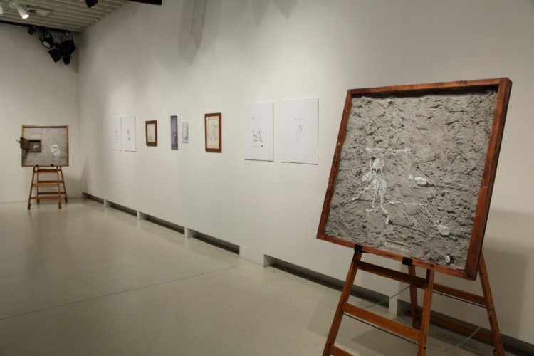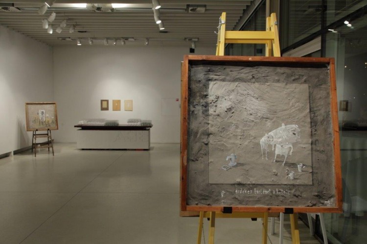 A kiállításon a natúr betonképek és a grafikák mellett láthatjuk még néhány könyvillusztrációját is.